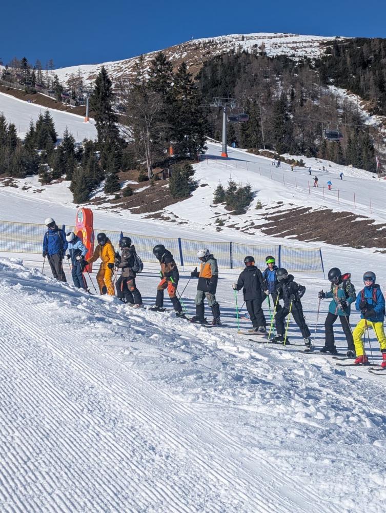 Seit Montag verbringen die Klassen 2a und 2b erlebnisreiche Tage im Skigebiet Christlum. In kleinen Gruppen wird gemeinsam Ski gefahren, geübt und viel gelacht. Natürlich darf auch eine Pause auf der Hütte nicht fehlen, um wieder Kraft zu tanken. Auf den Fotos sieht man gut, wie viel Spaß die Schüler*innen beim Skifahren haben. Die Kinder geben alles und können sehr stolz auf ihre Leistungen sein. Die Tage im Schnee sind für alle eine tolle Abwechslung zum Schulalltag.